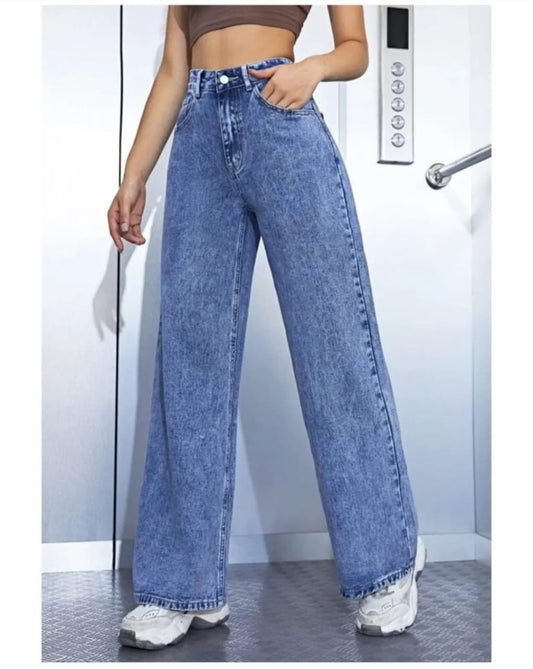 Boll wash High Waist wide leg Denim