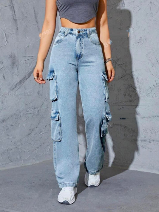 Now in Box pocket Denim Cargo High Waist 8 Pocket Cargo Denim